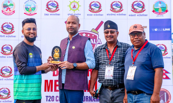 भैरहवा । रुपन्देहीको भैरहवामा जारी १२औं स्वर्गीय शेरबहादुर सेन्चुरी स्मृति अन्तरविद्यालय टी–२० क्रिकेट प्रतियोगितामा सोमबार शान्ति नमूना मावि र मणिमुकुन्द सेकन्डरी स्कूल फराकिलो अन्तरले विजयी भएका छन् । सिद्धार्थ क्रिकेट मैदानमा भएको पहिलो खेलमा शान्ति नमूनाले लुम्बिनी वर्ल्ड स्कूललाई ९ विकेटले पराजित गर्यो । टस हारेर ब्याटिङ गरेको लुम्बिनीले दिएको ७८ रनको लक्ष्य शान्ति नमूनाले ११.३ ओभरमा १ विकेट गुमाएर पूरा गर्यो ।